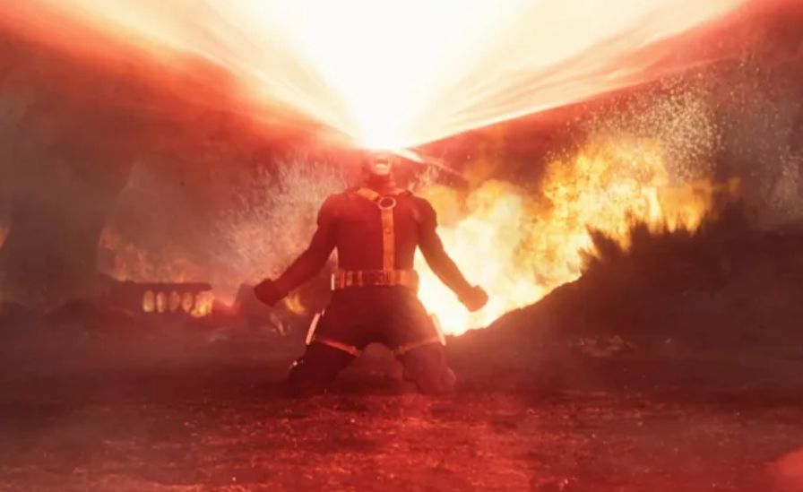 Then, Cyclops (Marsden) removes his visor and unleashes a massive optic blast as giant Sentinel legs appear in the background – hinting at a major threat.